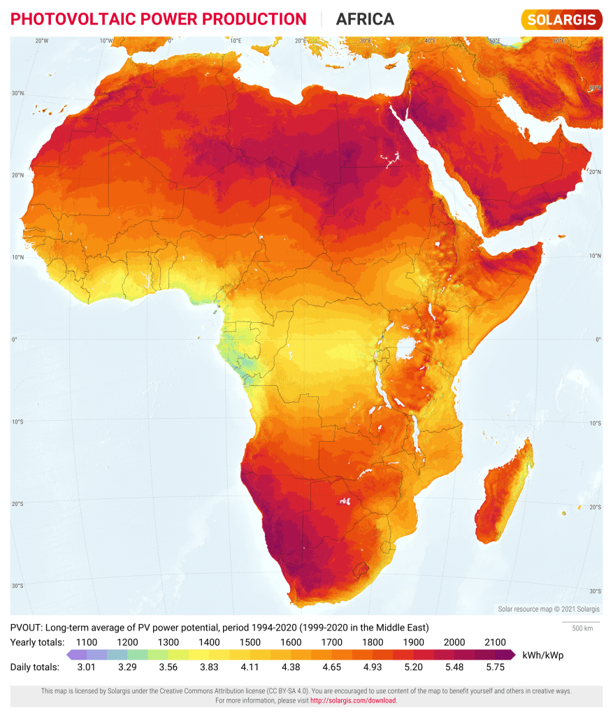 Vertical farming is an indoor method of food production where plants are grown and stacked on one another. For this reason, this method of food production is referred to as vertical farming. In my opinion, if we rely on renewable resources, vertical farming can indeed prove to a blessing for West and Central Africa. However, it has its own challenges as well. First and foremost, vertical farming consumes a lot of electricity on year-round basis. The price of electricity in each country across West and Central Africa can really either make or break vertical farming as a sustainable method of food production. Thus, there is a dire need that all electricity used in vertical farms should be 100% renewable. It is indeed a blessing that West and Central Africa has an excellent solar PV potential to produce 100% clean electricity. The map given below is an intellectual property of Solar GIS and show the electricity generation potential of West and Central Africa.
