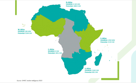 We can conclude from the above map that West and Central Africa has an excellent potential to produce electricity through solar PV. Likewise, as per Global Wind Energy Council’s report Status of Wind in Africa, West and Central Africa has a cumulative windpower potential of 11,795 GWs. On the contrary, the countries in the West and Central Africa barely had 296 MWs of installed wind power capacity (i.e. in West Africa in 2023). Thus, if solar PV and windpower technologies would be matured both clean sources can produce enough electricity to grow food in the region. So availability of 100% clean electricity on round the clock basis is not an issue.