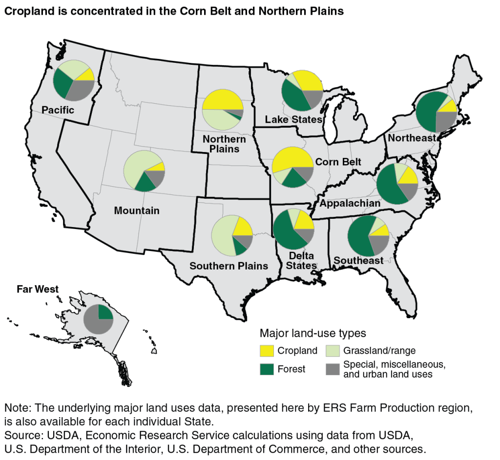 I personally believe that SmartFlower is a perfect solution when it comes to using agricultural plots for both food and electricity production in United States of America. We normally refer to such solution as agrivoltaics. As per the United States Department of Agriculture (USDA), a lions share of geographical area in Northern and Southern plains in USA is comprised of cropland and grassland. Similarly, mountain region in USA is mostly comprised of grassland and cropland as well. Lake states, Corn belt, Delta states and Pacific region also uses almost one-third of their geographical area as cropland and grassland. Altogether, the already spoken areas in USA represents more than half of the geographical area in the country. Fortunately, we can use these areas to install SmartFlower in order to produce both solar PV based clean electricity and food for households in the country. Thus, the farmers in USA can maximize their revenue through the sale of clean electricity as well as food in the market. The map given below is an intellectual property of US Department of Agriculture (USDA) and is shared here for awareness creation purpose only.